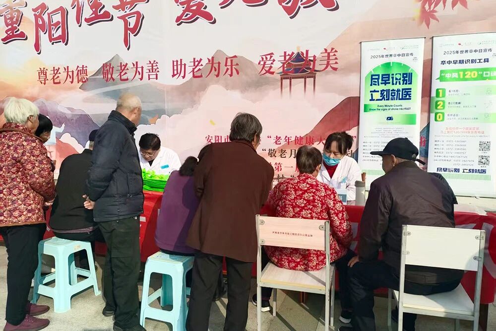 九九重阳,情暖桑榆。为着力缓解农村老年群体 “看病远、咨询难” 的困扰,2025年10月29日,安阳市第三人民医院聚焦农村老年健康需求,于重阳节期间组建专项医疗团队,分别走进崔家桥杨新庄、柏庄西苏度、文峰皇甫屯三村,开展“送医下乡”义诊活动,将专科医疗服务送到村民家门口,恰逢第20个“世界卒中日”,同步普及卒中防治知识,为村民健康保驾护航。