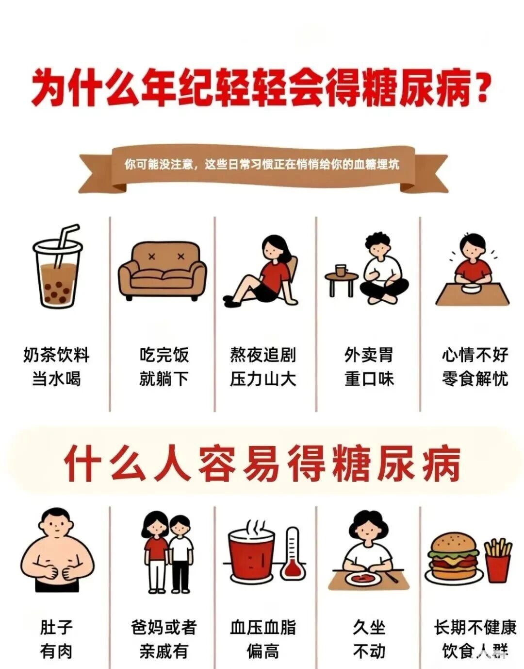 平衡膳食,减少精制碳水化合物(如白米饭、面食、饼干等)和含糖饮料的摄入,适当运动、戒烟限酒、规律作息。