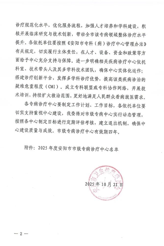 安阳市第三人民医院将以两大市级专病诊疗中心落地为契机,持续加强人才培养、科研创新与技术推广,充分发挥示范引领作用,带动区域专病诊疗水平整体提升。医院将继续坚守“厚德 至善 博学 匠心”的院训精神,让更多患者在家门口就能享受到国家级水平的医疗服务,为健康安阳建设贡献坚实力量!