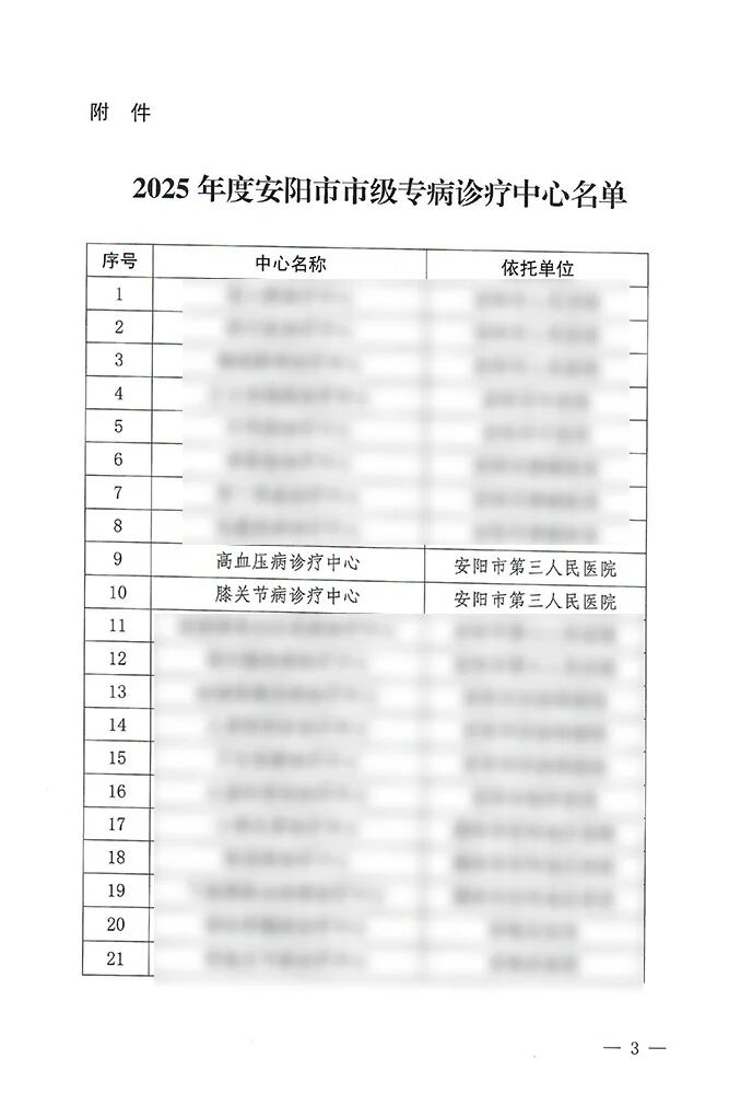 近日,经安阳市卫生健康委员会严格评审认定,安阳市第三人民医院成功获批市级高血压病诊疗中心与市级膝关节病诊疗中心。两大中心的落地,是医院学科建设的重大突破,更是践行“以人民健康为中心”理念的生动实践,将为患者提供更精准、高效、全周期的专病诊疗服务。