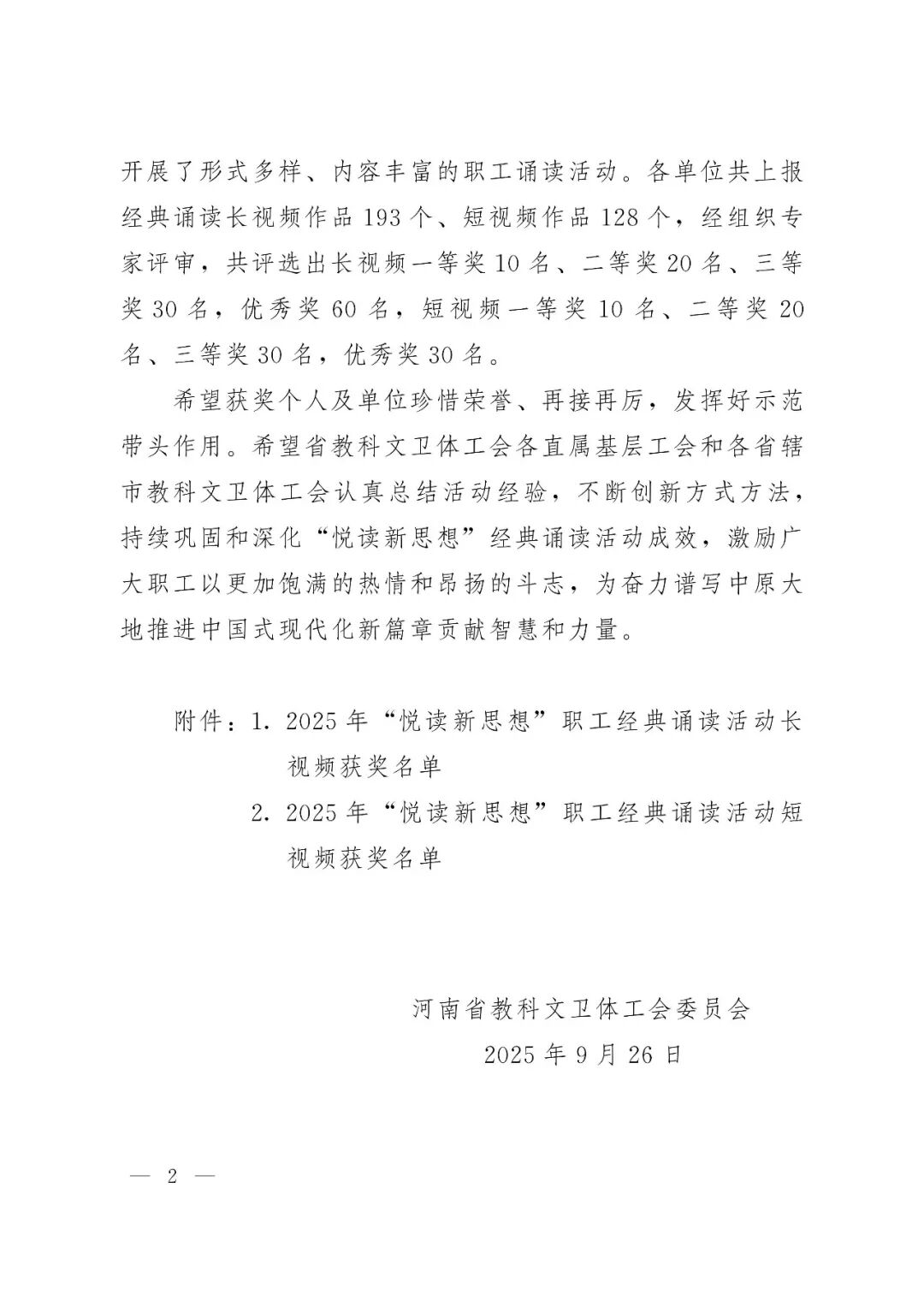 为深入学习实践习近平文化思想,贯彻落实习近平总书记关于全民阅读工作的重要指示批示精神及关于河南工作的重要论述,河南省教科文卫体工会开展了2025年“悦读新思想”职工经典诵读活动,吸引了全省广大职工积极参与。