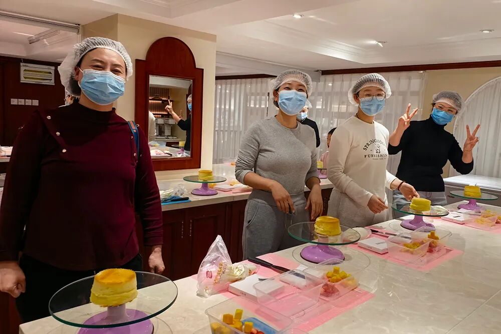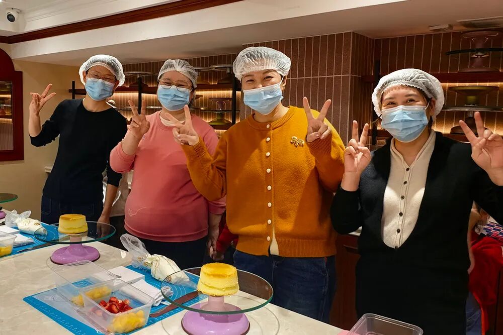 她们在烘焙老师的指导下,精心雕琢着自己的甜蜜作品,空气中弥漫着奶油与欢乐的香气。