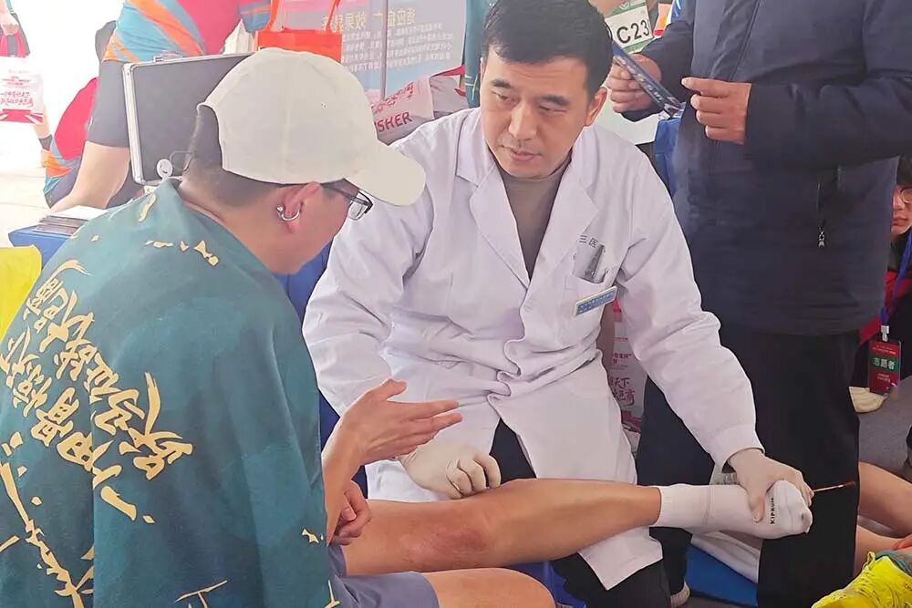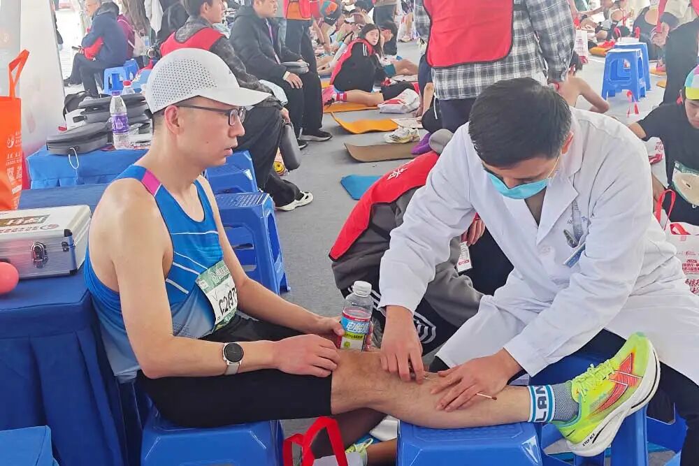 团队不仅提供专业的医疗处置,更为选手们送上贴心的康复指导,帮助大家缓解疲劳,加速恢复。据统计,比赛当天,该医疗点共接待咨询及治疗选手60余人次,高效处理了包括35例肌肉损伤、20例关节疼痛及5例肌肉痉挛在内的各类运动损伤。得益于团队的专业处置,所有选手均未出现严重并发症,平安离场。