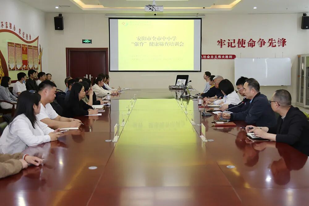 为深入贯彻落实《2026年全市中小学“明眸皓齿强脊”健康筛查工程民生实事实施方案》要求,确保全市中小学“强脊”健康筛查工作规范、有序、同质化推进,切实守护青少年脊柱健康,4月15日下午,安阳市2026年中小学“强脊”健康筛查技术培训会在市第三人民医院举办。市卫健委四级调研员、疾控科科长郭军红,市第三人民医院副院长李任增,各县(区)卫健委疾控股股长,及“强脊”定点筛查医院相关负责人、技术骨干参加此次培训,李任增副院长主持会议。