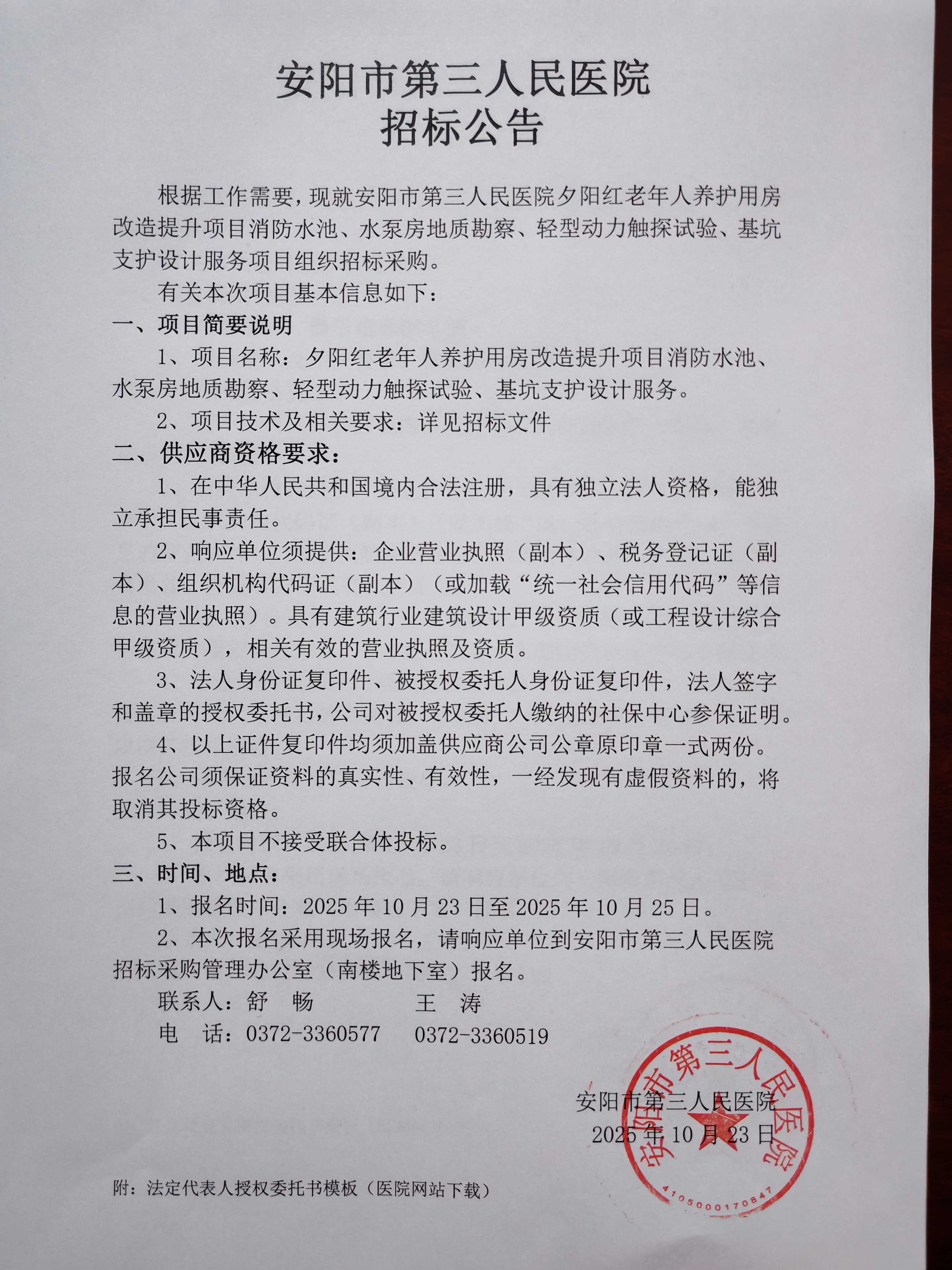 招标公告(夕阳红老年人养护用房改造提升项目消防水池水泵房地质勘察、轻型动力触探试验、基坑支护设计服务)
