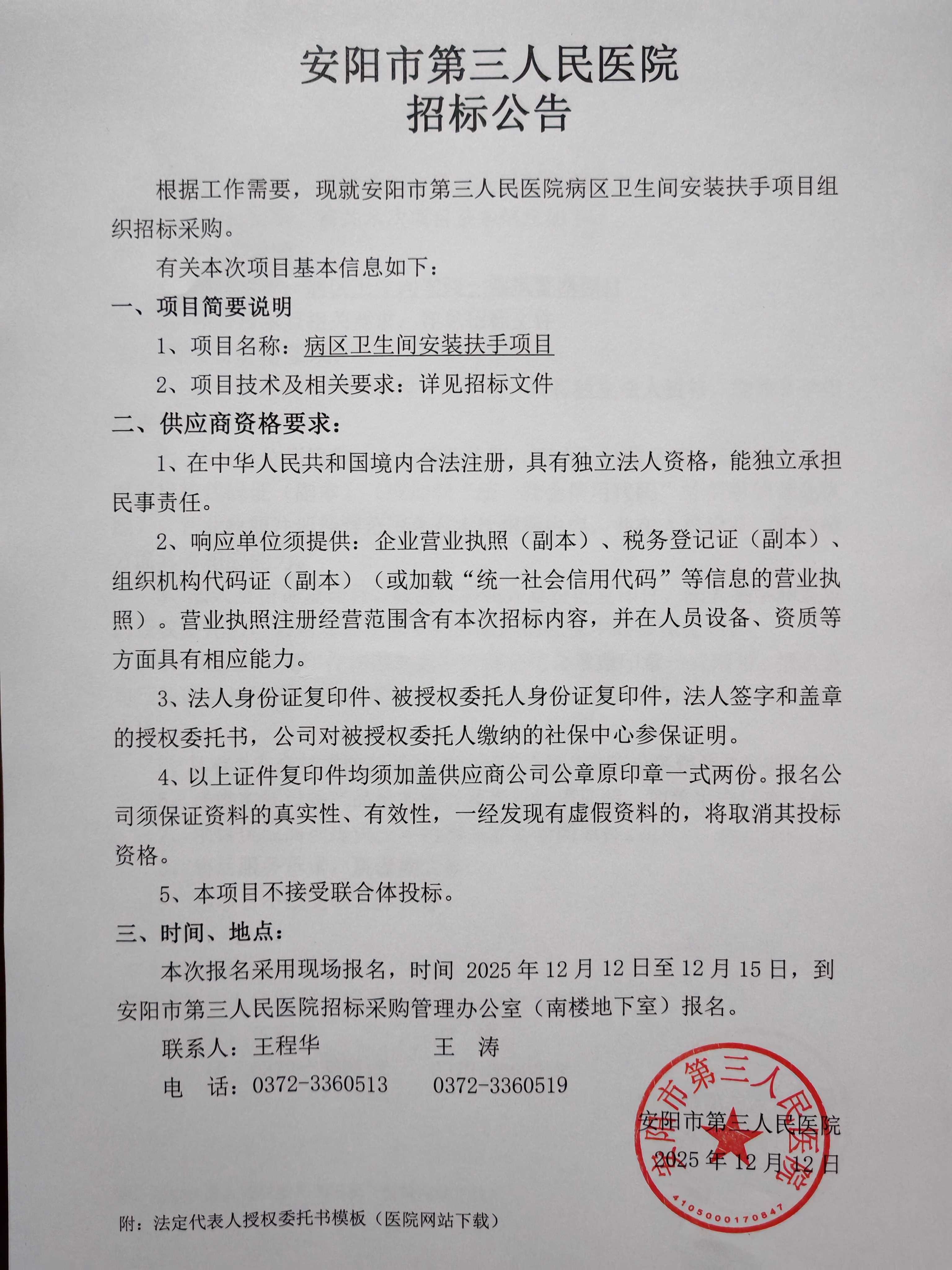 首页    信息公告    招标公告(病区卫生间安装扶手项目)