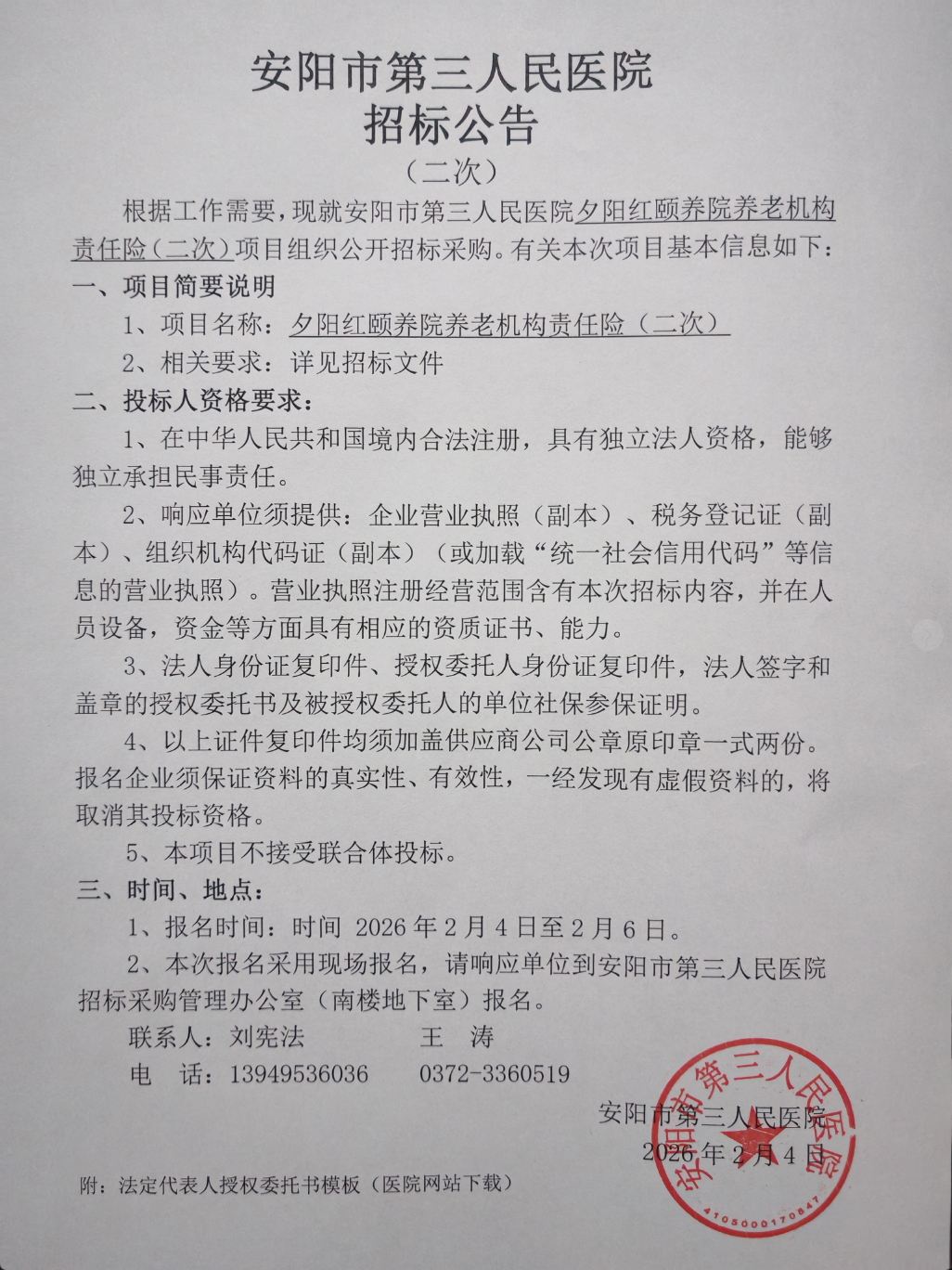 招标公告(夕阳红颐养院养老机构责任险(二次))
