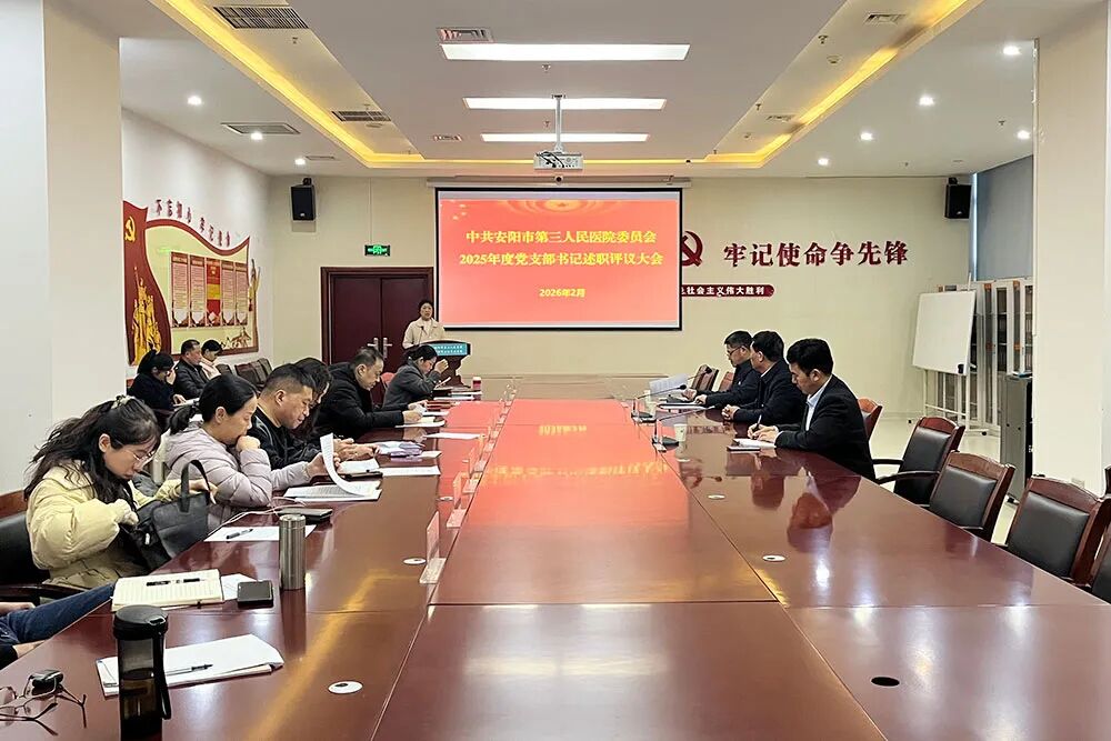 为全面检验2025年度各党支部工作成效,强化支部书记履职担当,规范支部建设工作,2026年2月10日下午,中共安阳市第三人民医院委员会召开2025年度党支部书记述职述廉述党建会议。院党委领导班子、各党支部书记参加会议。